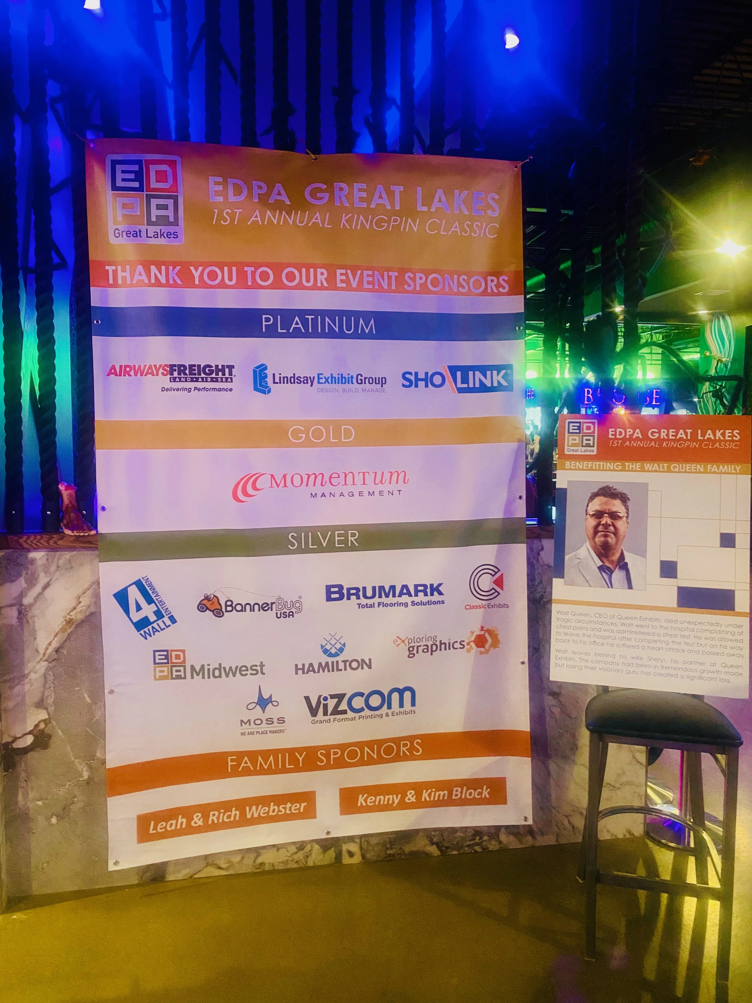 EDPA Great Lakes Chapter celebrated the life and legacy of one of our own, Walt Queen of Queen Exhibits, at On Par Entertainment in Dayton, OH during our 1st Annual Kingpin Classic, it was an honor. With the support of Walt's family, friends, and industry family we were able to raise $9,810.00 that will benefit and go directly to the Queen family. The evening was filled with unforgettable stories about Walt, through laughter and tears too. We miss you Walt and you will not be forgotten.